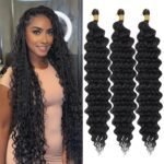 ZRQ Deep Wave Crochet Hair Natural Black 18 Inch 3 Packs Ocean Wave Curly Braiding Hair for Boho Braids Synthetic Curly Crochet Hair For Women #1B