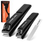 Nail Clippers with Glass Nail File, Ultra Sharp Nail Clipper Set, Professional Fingernail & Toenail Clippers Nail Cutter for Men and Women (Black)
