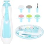 Electric Nail File Drill for Baby No Sharp Claws Hurt, 6 in 1 Safety Cutter Trimmer Clipper for Toes and Fingers (Blue)