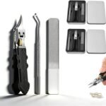 Black Anti-Slip Grip Gear Lock Nail Clipper Set with Ultra-Sharp Tips for Precise Access to Nail Grooves, Pro Nail Tools Eagle Beak Angled Nail Clippers 3-Piece Set (Black-A)