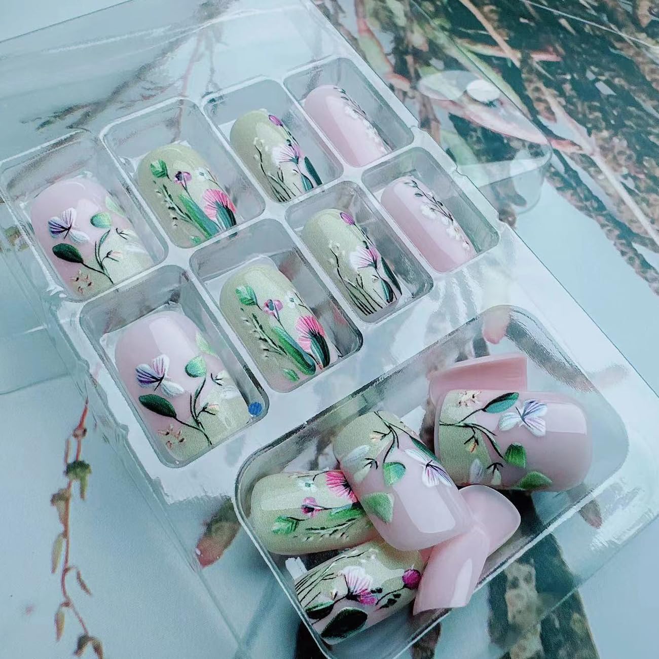Nail Press on Stick on nails: Easy to apply, just a few minutes to get a salon-like manicure effect. You can change your nail style anytime and anywhere, just choose the right size and use nail glue or jelly glue. Great choice for home DIY manicures and urgent appointments.