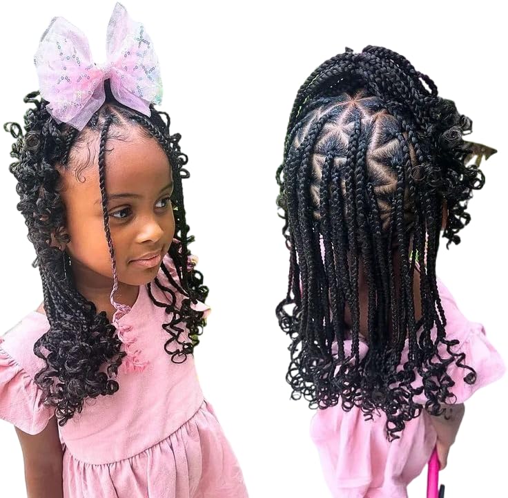 Beautify your daughter without pain:This ponytail is designed to add children’s volume without going through any pain. The box braid add a touch of elegance to this easy- to- do and practical hairstyle.The curly ends take this look to the next level,adding volume and a whimsical touch