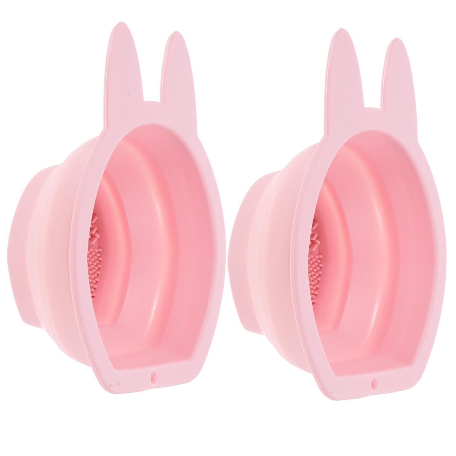 2 Pcs Rabbit Silicone Scrubber Powder Puff Cleaning Scrubber Coetic Scrubber Mat Folding Makeup Sponge Cleaners Makeup Brush Cleaners Hanging Makeup Puff Cleaners Pink