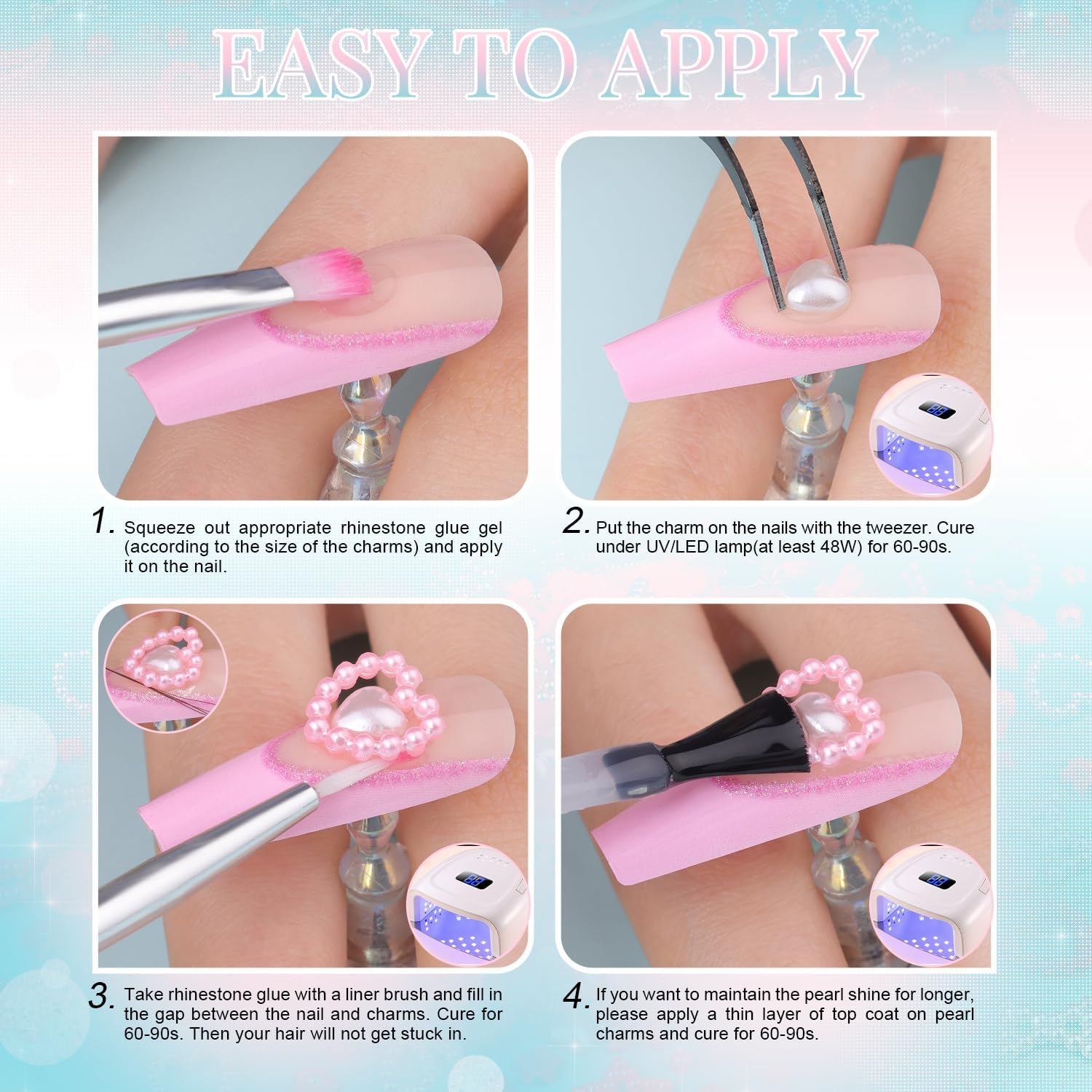 Great Value Nail Charms Set: The Package contains a box with bow nail charms, pearl nail charms, glittering nail charms, 3D nail flowers, and small nail pearls. Besides, this package also comes with a pc of tweezers and a pc of picker pencil for your convenience to pick up the charms