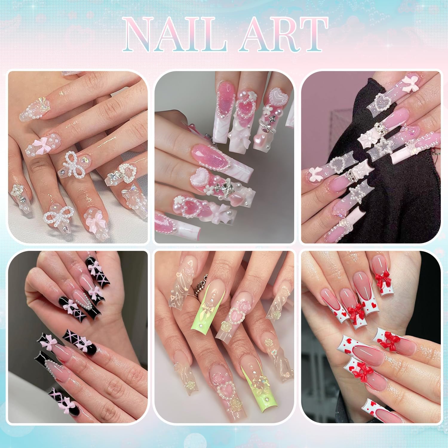 Nail Art Inspo — The combination of bow, heart, star, flower and pearl is genious. You can create kawaii, elegant, chunky or y2k nails as you like. The set is suitable for manicure beginners or professional nail artists