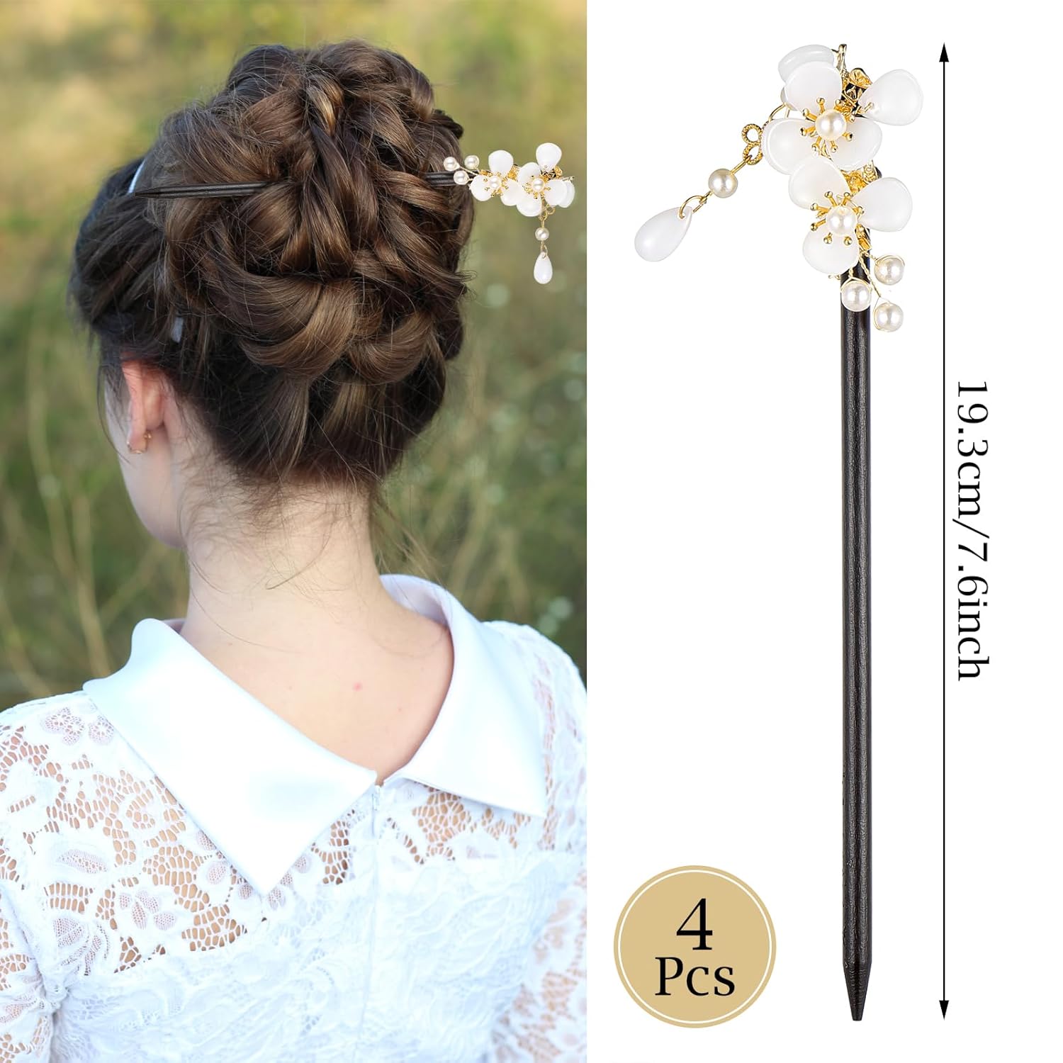 Value Set: You will receive 4 pieces of flower hair sticks in different styles, exquisite and beautiful, elegant and retro, plenty of choices to meet your daily matching and replacement needs