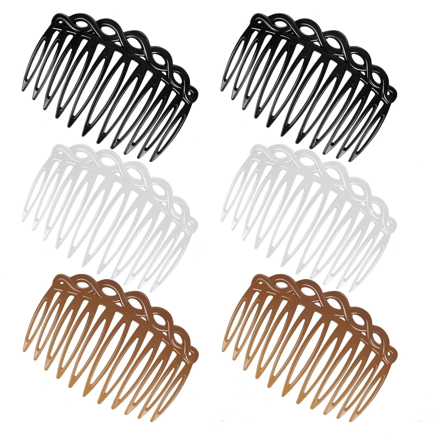 6 Pcs French Hair Side Combs, Women Hair Comb Accessories Set Plastic Twist Decorative Comb Hair Clips 4 Colors Bridal Wedding Veil Teeth Hair Combs for Multiple Hairstyles Girls Women