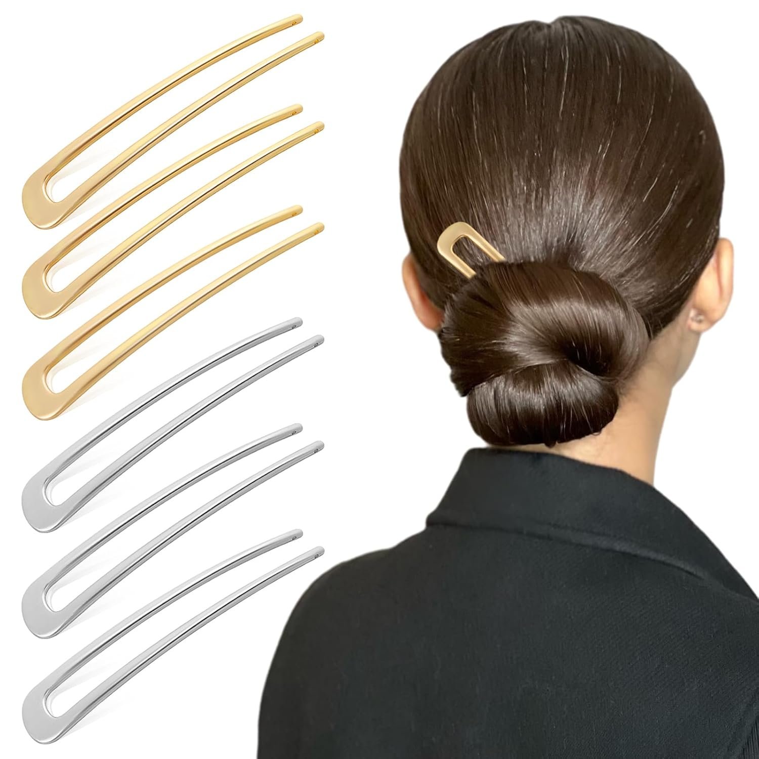 【What You Will Get】You will receive 6 decorative hair pins, the size is 10x2cm/3.93×0.78inch, including gold, silver, rose gold to choose from, with hair pins for styling, you can quickly complete the art of bun, it is an ideal accessory to help you create a bun, low bun and stylish bun