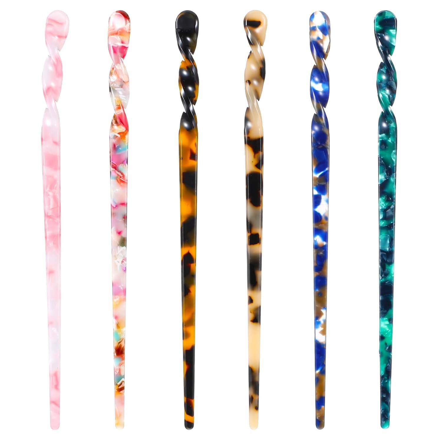 6pcs Acetate Hair Sticks Leopard Print Hair Pins Tortoise Shell Hairpin Vintage Hair Chopsticks Retro Hairpins Disk Hair Accessories Chinese Hair Sticks for Women Girls Hairstyle Accessories