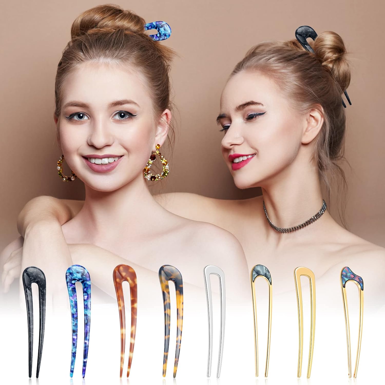 Rich quantity: you will receive 8 pieces of French U-shaped hairpins, which are available in some cute styles, lovely and simple, designed with ideal size, stylish accessories for you to use, rich styles and enough quantity for you to choose and match with your different clothes, you can also share them with your friends