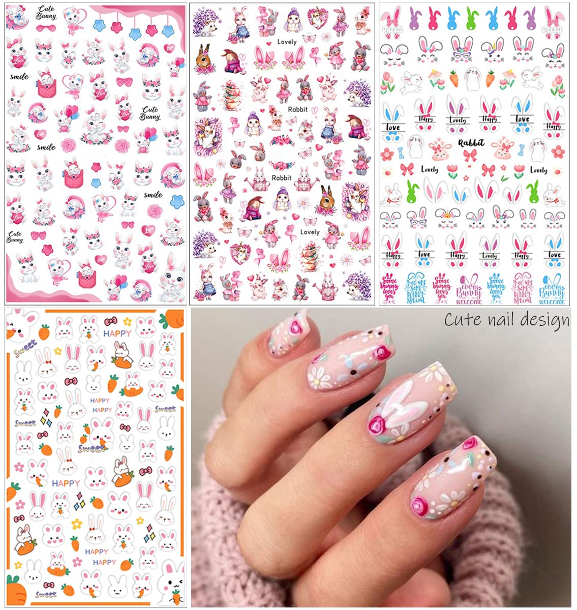 Easy to Use: These lovely rabbit stickers for nails are self-adhesive, just choose your favorite design and stick it on your nail. You can also apply a layer of top coat/nail polish to make your nails keep long time.