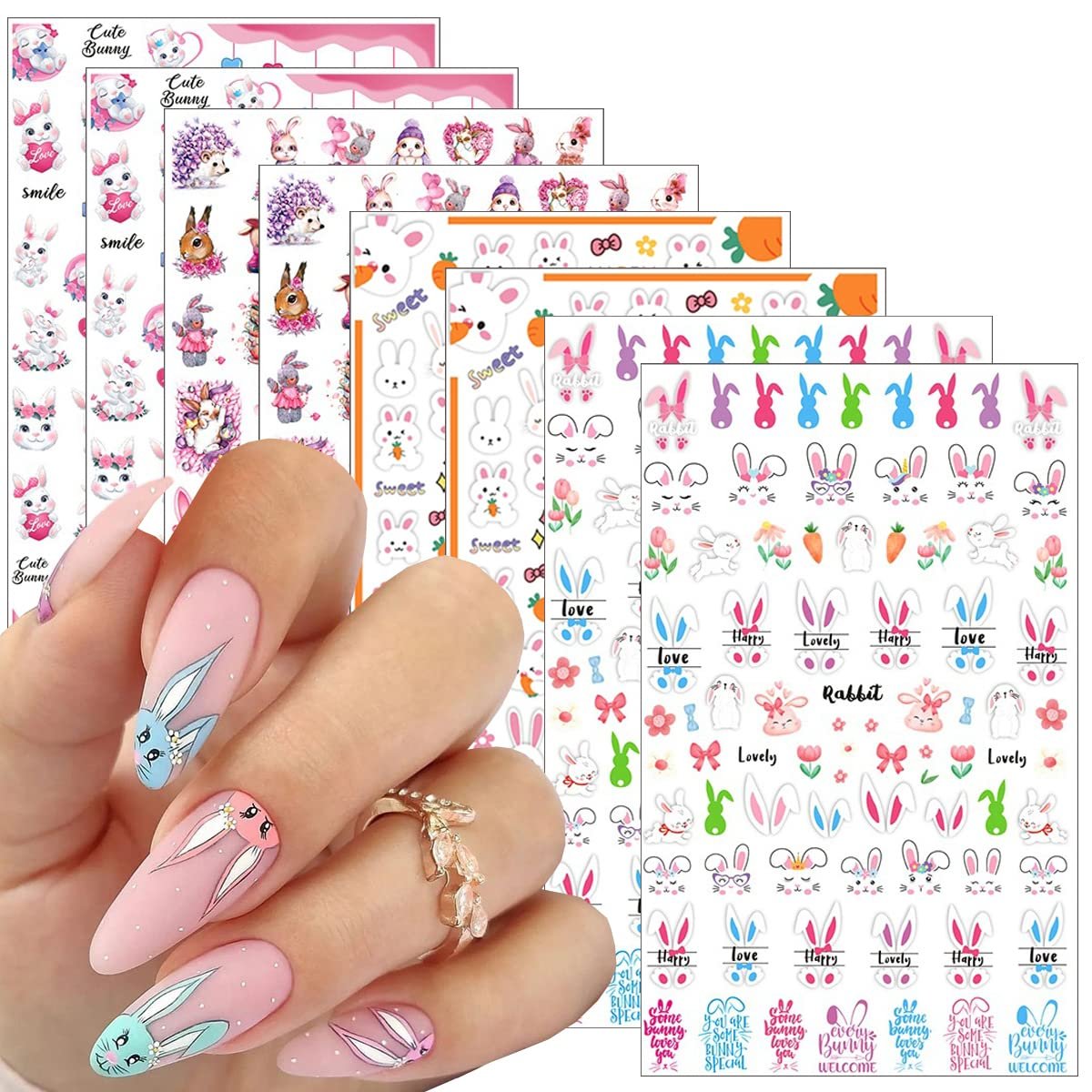 3D Nail Stickers: Easter rabbit nail stickers 8 Sheets Easter set, beautiful and fashionable, you can design your own nails according to your own preferences, suitable for finger nails and toe nails.