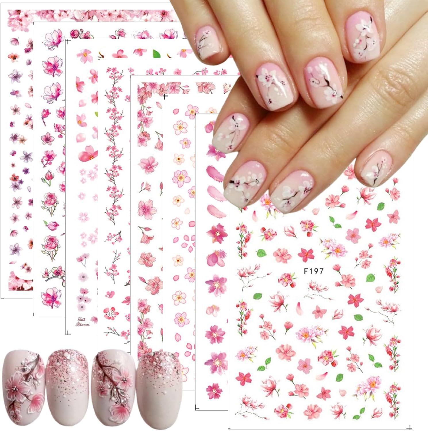 🌸Fashion Flowers Stickers Set :You will get 8 sheets spring summer theme flower nail stickers ,pink floral nail stickers decals are the perfect fashion accessories.Large number of different patterns for you to use and replace in daily life,cherry blossoms nail decals are full of sensuality and elegance, Various charming patterns bring you a different mood.
