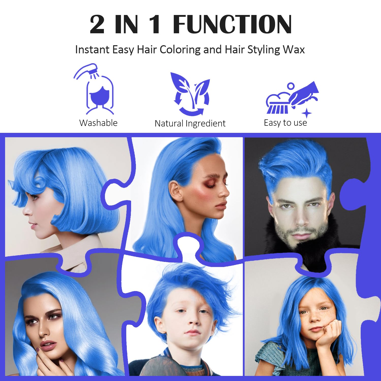 Hair Coloring – Achieve your desired hairstyle with our water-based styling wax. Create unique looks with ease as you mold, shape and sculpt your hair while also dyeing it clay ash blue