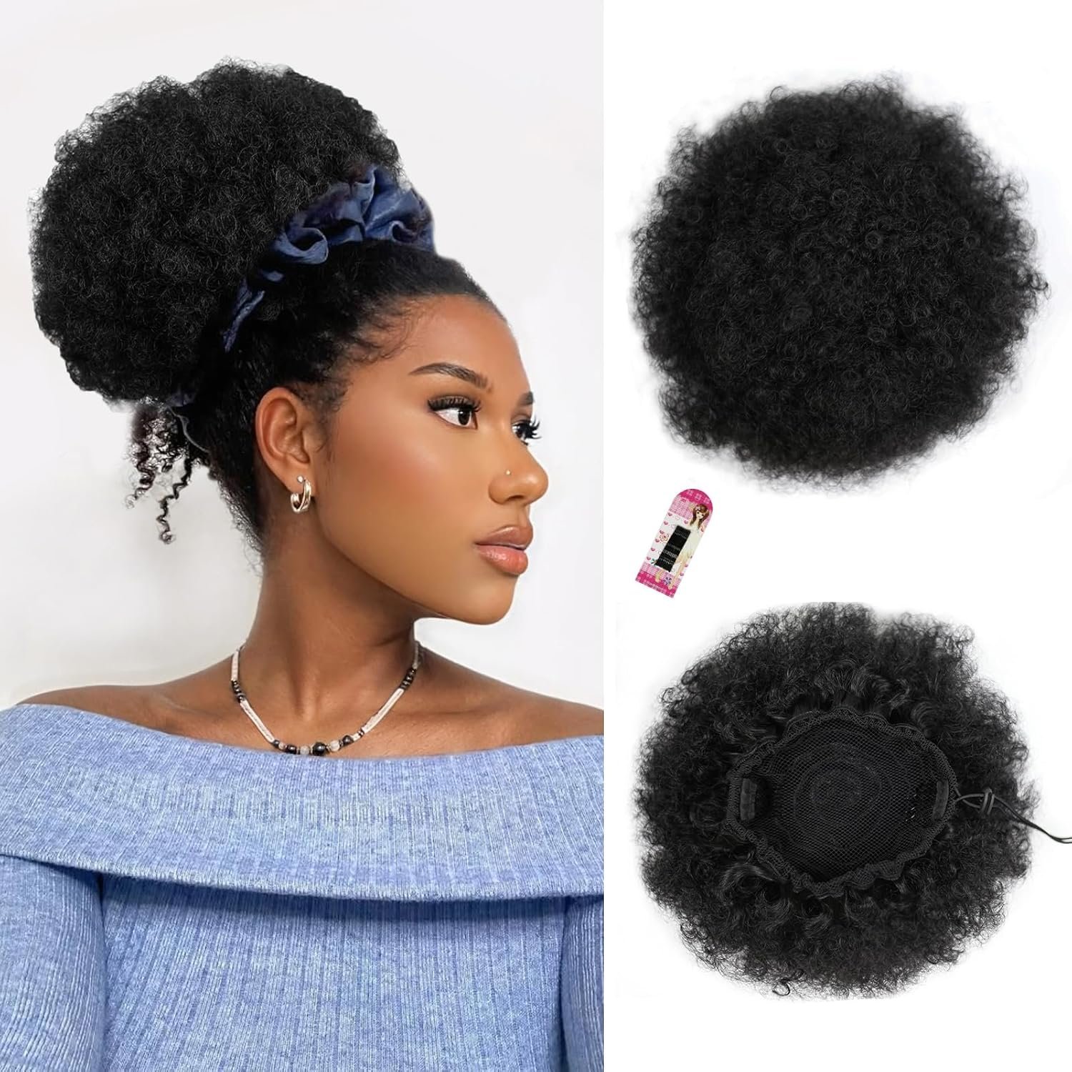 Afro Puff Drawstring Ponytai:The Ponytail Hair Bun Is Good For A Quick And Easy Style,It’S Easy To Install And Blended In With Your Hair Perfectly