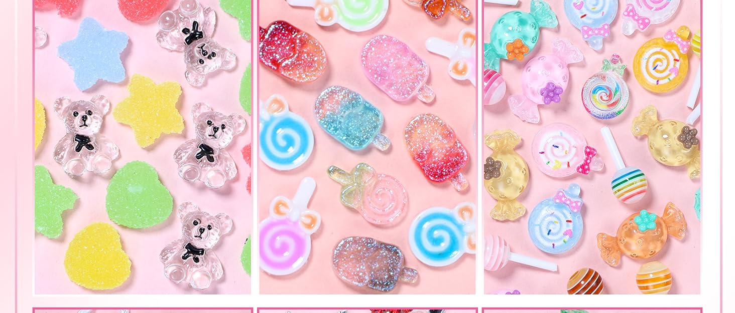 A variety of cute candy nail charms provide you with many choices to design your nail art style.