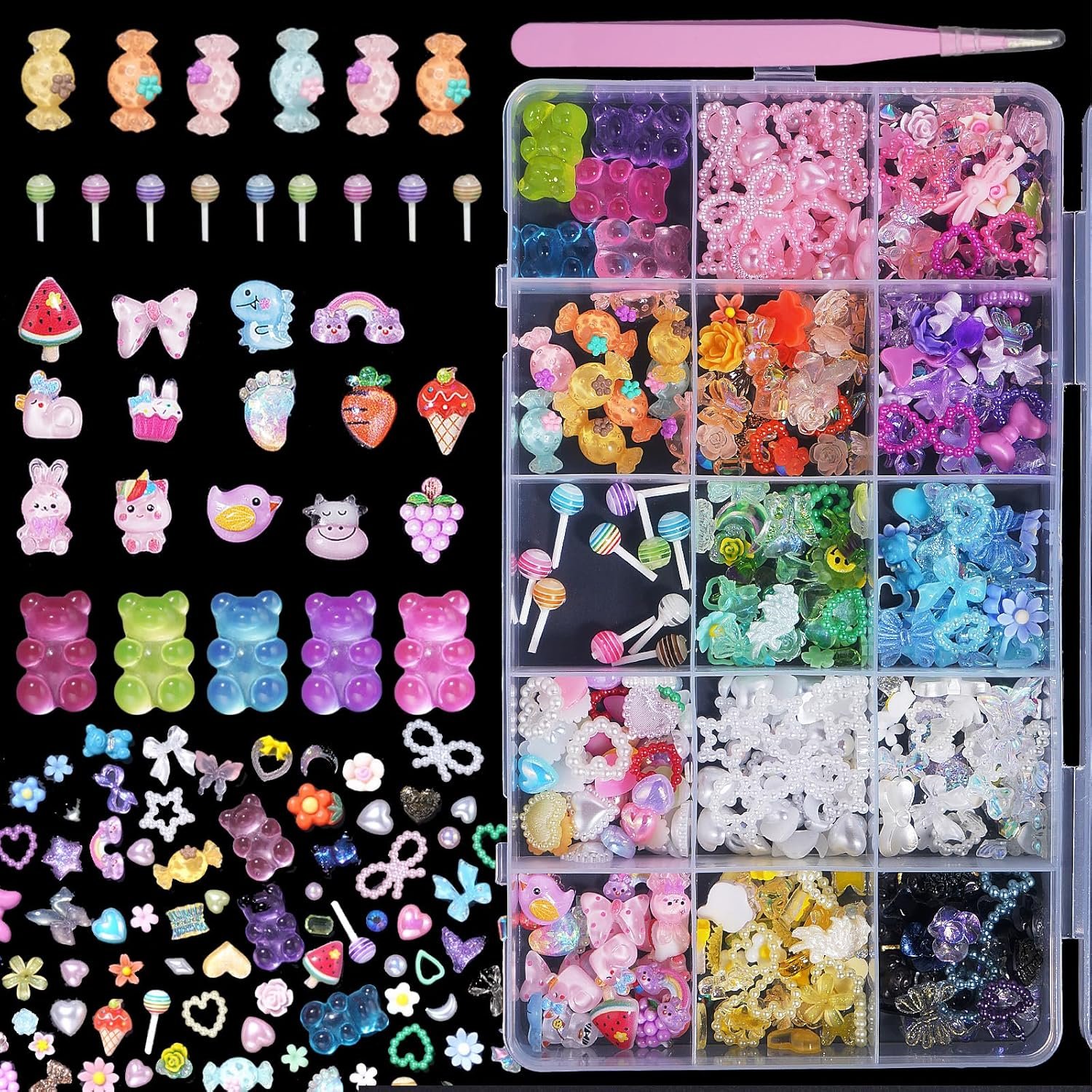Color Assorted Nail Charms: You will get a box of 15grids of 3D color nail charms. Mixed color and mix styles nail charms