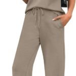 WIHOLL 2 Piece Sets for Women Casual Summer Travel Vacation Outfits Cap Sleeve Lounge Set