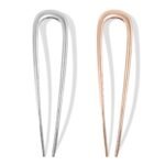 2Pcs French Hair Pins for Thick Hair, Metal French Twis Hair Pins for Women Girls, U-Shaped French Pin for Buns, 5.5 Inches Large French Pins Hairstyle Accessories (Silver, Rose Gold)