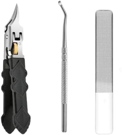 Black Anti-Slip Grip Gear Lock Nail Clipper Set with Ultra-Sharp Tips for Precise Access to Nail Grooves Professional-Grade Manicure Tool for Men Seniors Curved Sharp Blades Non-Slip Ergonomic Handle Durable Safe Construction