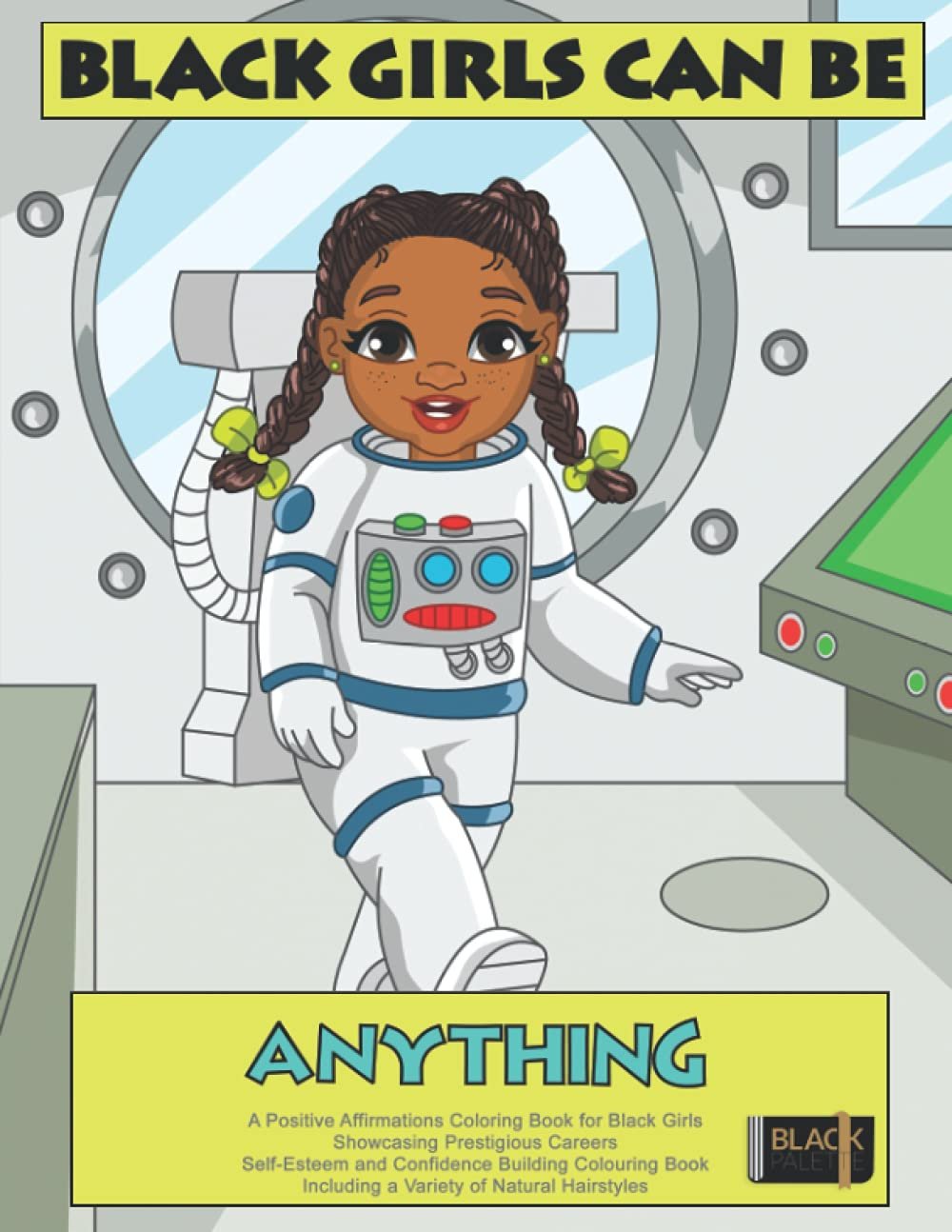 “Black Girls Can Be Anything” is an inspiring and empowering coloring book designed specifically for little girls of color and is filled with illustrations of successful girls in various career fields.
