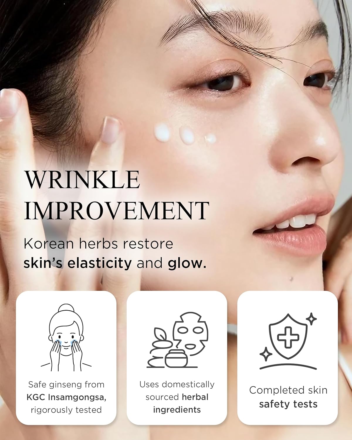 KOREAN RED GINSENG EYE CARE: Premium red ginseng extract with concentrated saponin specifically formulated for delicate eye area to support elasticity and reduce appearance of fine lines through enhanced circulation