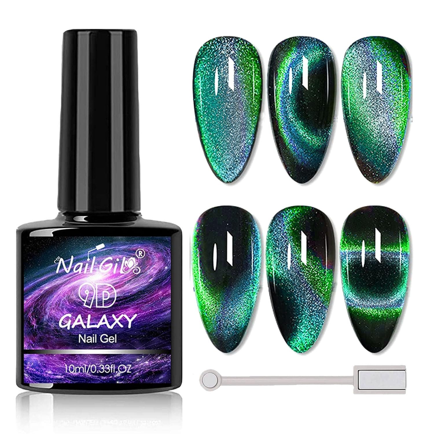 Absolutely Gorgeous Effect: The 9D nail gel polish not only with cat eye (black hole) effect but also with chameleon clolor, galaxy effect, shimmer effect when you match with differecnt gel and tool! You ccould got awesome result when Mix the color! Attractive color changing and cat eye effects will be phenomenal and magnificent!. Different effect depending on the light and Angle
