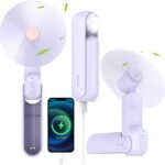 4 IN 1 Portable Mini Handheld Fan,Personal Foldable Cooling Hand Fan, Pocket Fan,Flashlight,Power Bank,Table Lamp,Camping Travel Beach Fan Gifts, Birthday Gifts for Women Mom(Purple)