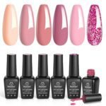 Beetles Purple Gel Nail Polish Set, 6 Colors Nude Deep Purple Pink Glitter Gel Polish Confetti Collection Soak Off Uv Led Nail Art Manicure Kit Gifts for Women