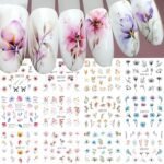 SINSEN 12 Designs Ink Flower Nail Art Stickers Leaves Daisy Lavender Floral Pattern Water Transfer Nail Decals Spring Summer Nail Designs Blossom Flowers Nail Art Decorations for Women Girls