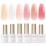 GAOY Milky White Jelly Nude Gel Nail Polish Set, 6 Transparent Colors Sheer Pink Orange Soak Off UV Light Cure Gel Polish Kit for Salon and Nail Art DIY at Home