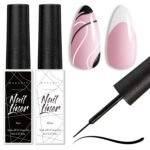 Makartt Gel Nail Polish Liner Set 8ML 2 Colors White and Black for Winter French Nail Art French Tips Swirls DIY Manicure Soak Off UV Curing with Thin Brush