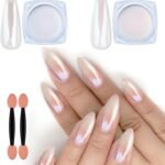 Artdone 2 Jars Chrome Nail Powder White and Red Pearl, Iridescent Aurora Powder Metallic Mirror Effect Pigment Pearlescent Mermaid Pearl Dust Kit, Decoration Resin Craft