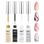 Gel Liner Art Polish Set 10ml, 4 Colors Black White Gold Silver Design Paint with Thin Brush in Bottle for Swirl/ Euphoria French Tips Manicure Painting DIY at Home