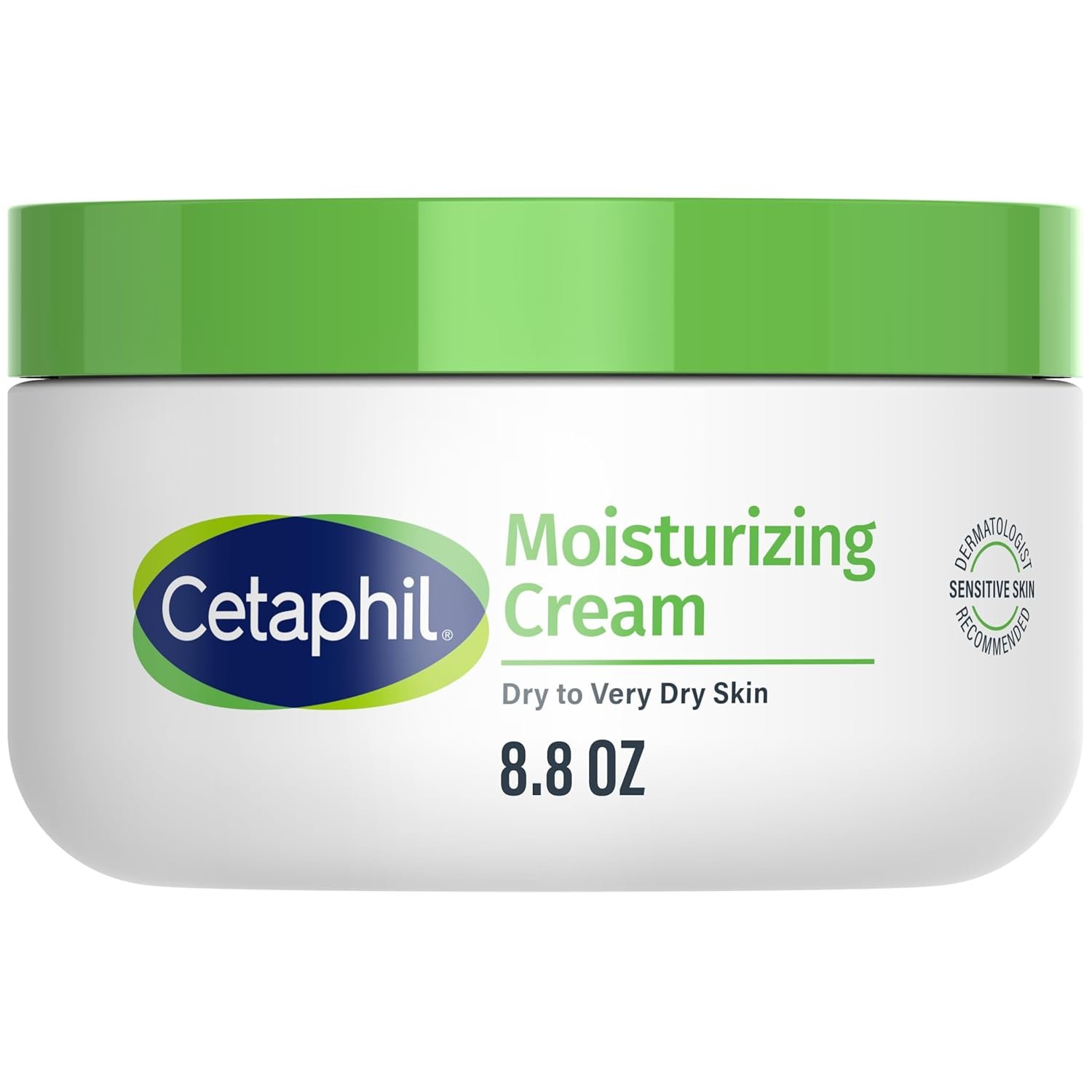 Care for your dry to very dry skin with CETAPHIL Moisturizing Cream, a non-greasy, moisture rich cream for the whole body. Enriched with sweet almond oil and vitamin E, it immediately comforts and instantly hydrates dry, sensitive skin. Formulated with a new blend of key ingredients: hydrating glycerin, panthenol (vitamin B5) to hydrate, soothe and preserve the skin barrier, and niacinamide (vitamin B3) to help smooth skin texture and retain skin moisture barrier. For long lasting hydration, this extra strength face & body moisturizer binds water to the skin to deeply replenish the skins moisture and prevent moisture loss, hydrating and soothing skins dryness for 48 hours and completely restoring the skins moisture barrier in one week. Ideal for very dry areas of skin on the hands, feet, elbows and knees, leaving your skin feeling soft, smooth and nourished. This fragrance free, paraben free, and sulfate free formula will not clog pores and is clinically tested for even the most gentle skin. Effectively defends against 5 signs of skin sensitivity.