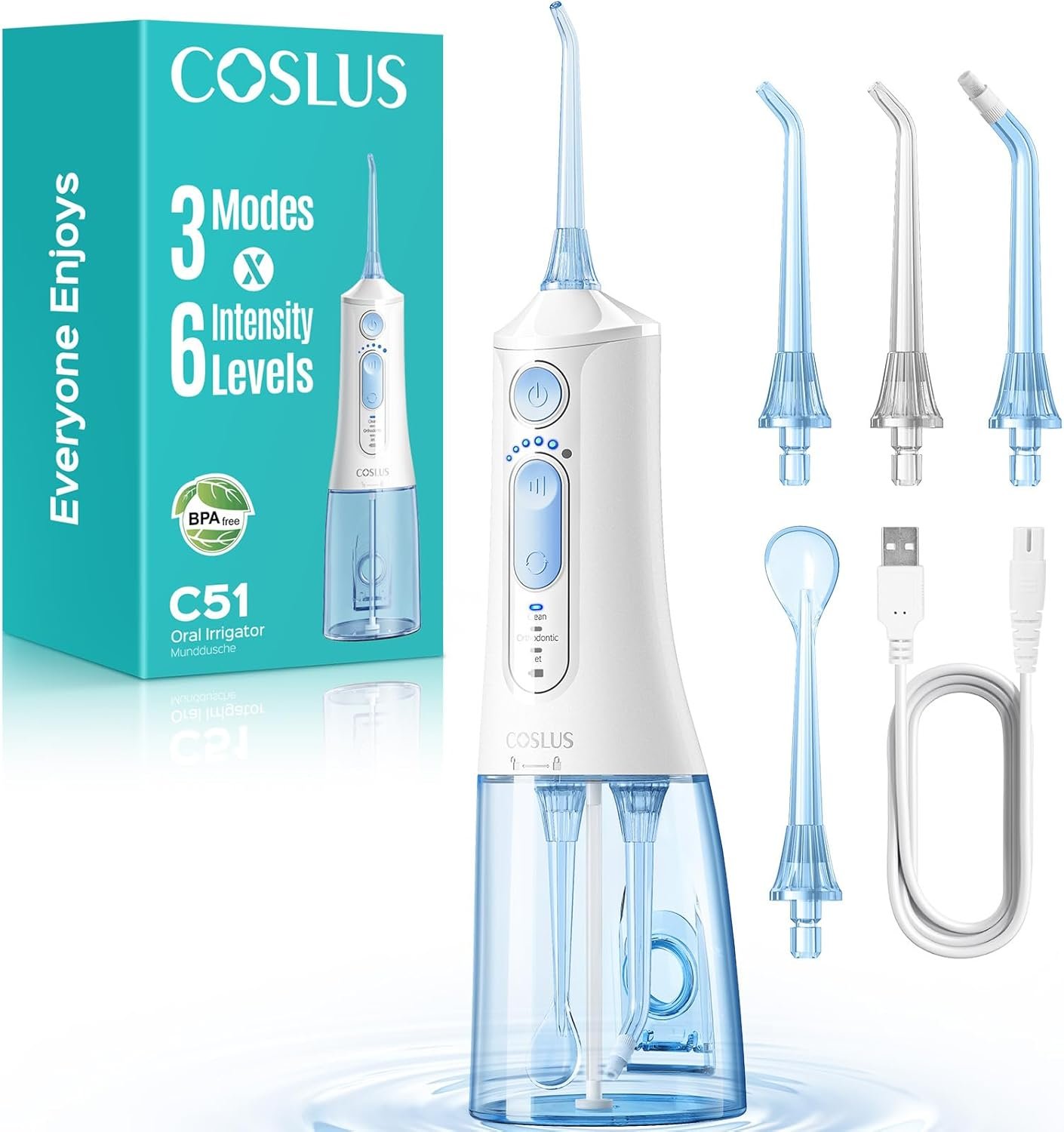 Advanced Safety & Reliability Performance: Meticulously developed by the COSLUS R&D team, this oral irrigator is committed to creating high-performance and safety standards. Built to last up to 3 years with typical use. The water teeth pick reliable construction provides unwavering confidence for your daily routine, ensuring peace of mind, ​​to support long-term oral health and help you achieve a consistently fresh smile