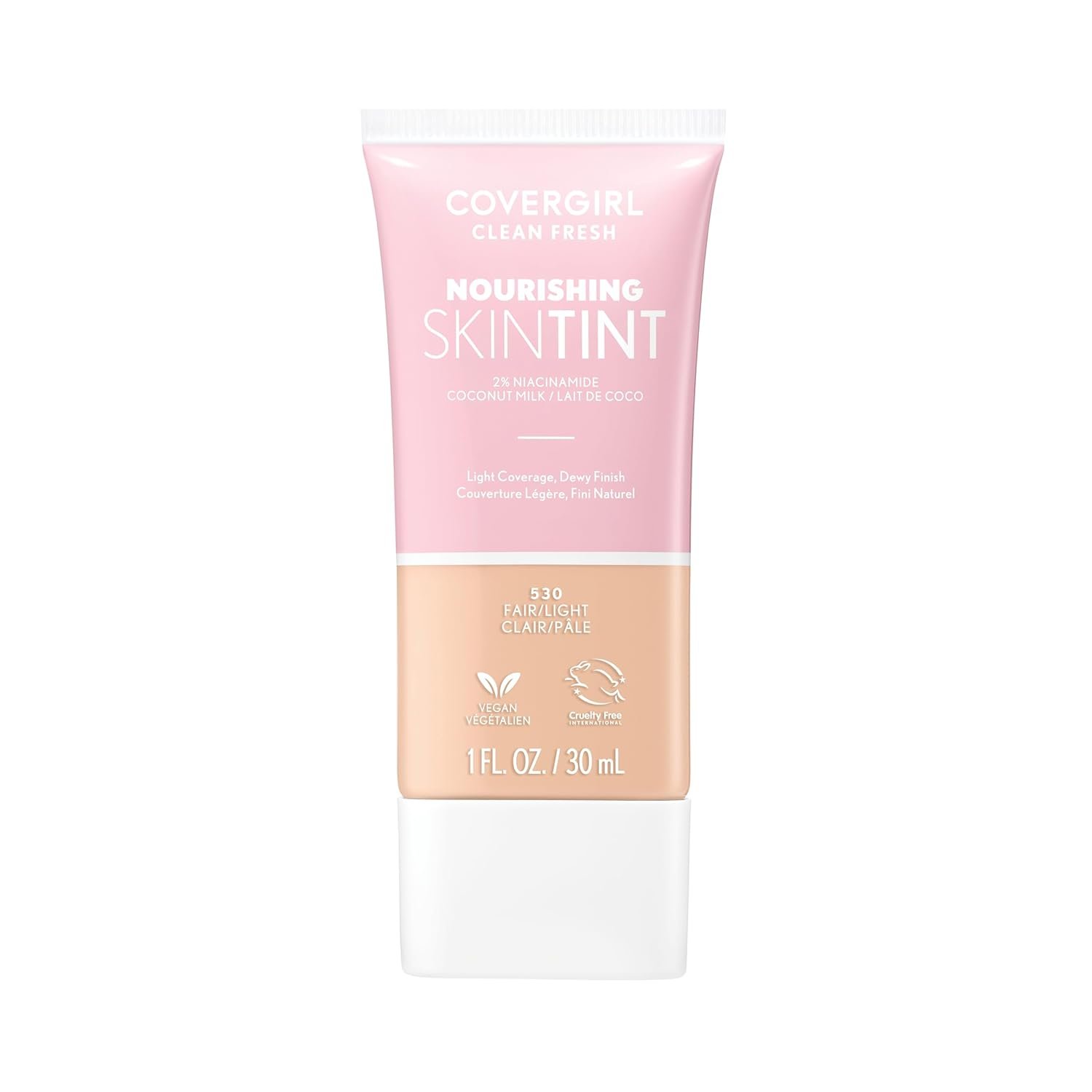 COVERGIRL Clean Fresh Nourishing Skin Tint, 520 Fair/Light, Liquid Foundation, Dewy Finish, Infused with Coconut & Aloe, Vegan Formula