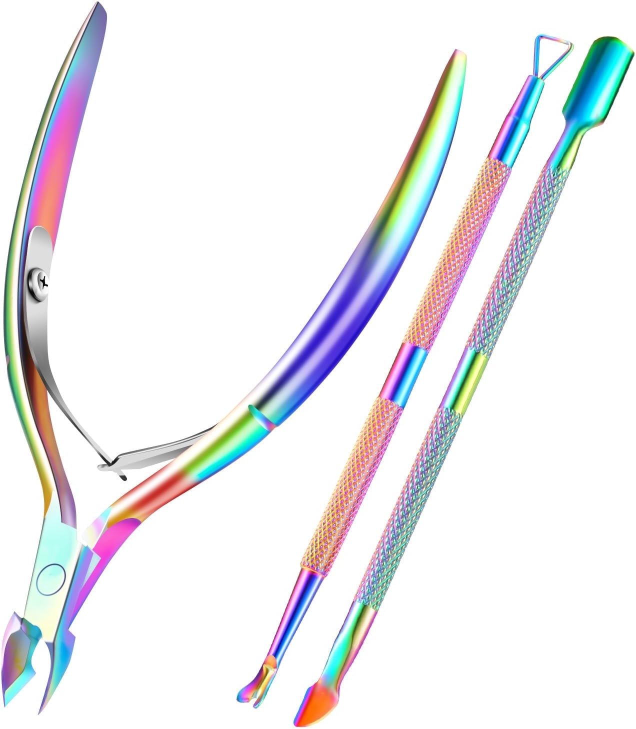 Ergonomic Non-slip Handle Design — Our professional cuticle remover tools set is designed with an ergonomic non-slip handle, providing you with a comfortable hand feeling, you can remover the cuticles more effectively. In addition, the chameleon design makes it a beautiful set of color manicure artwork.