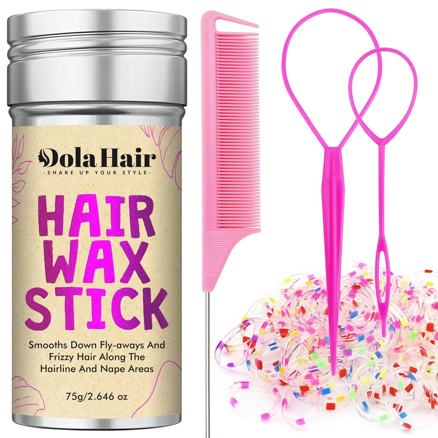 Package includes: 1 pack of 2.7 Oz hair wax stick, 50 Pcs Colorful Baby Elatic Hair Bands, 1 Pcs Slick Back Hair Brush and 2 Hair Loop Styling Tools