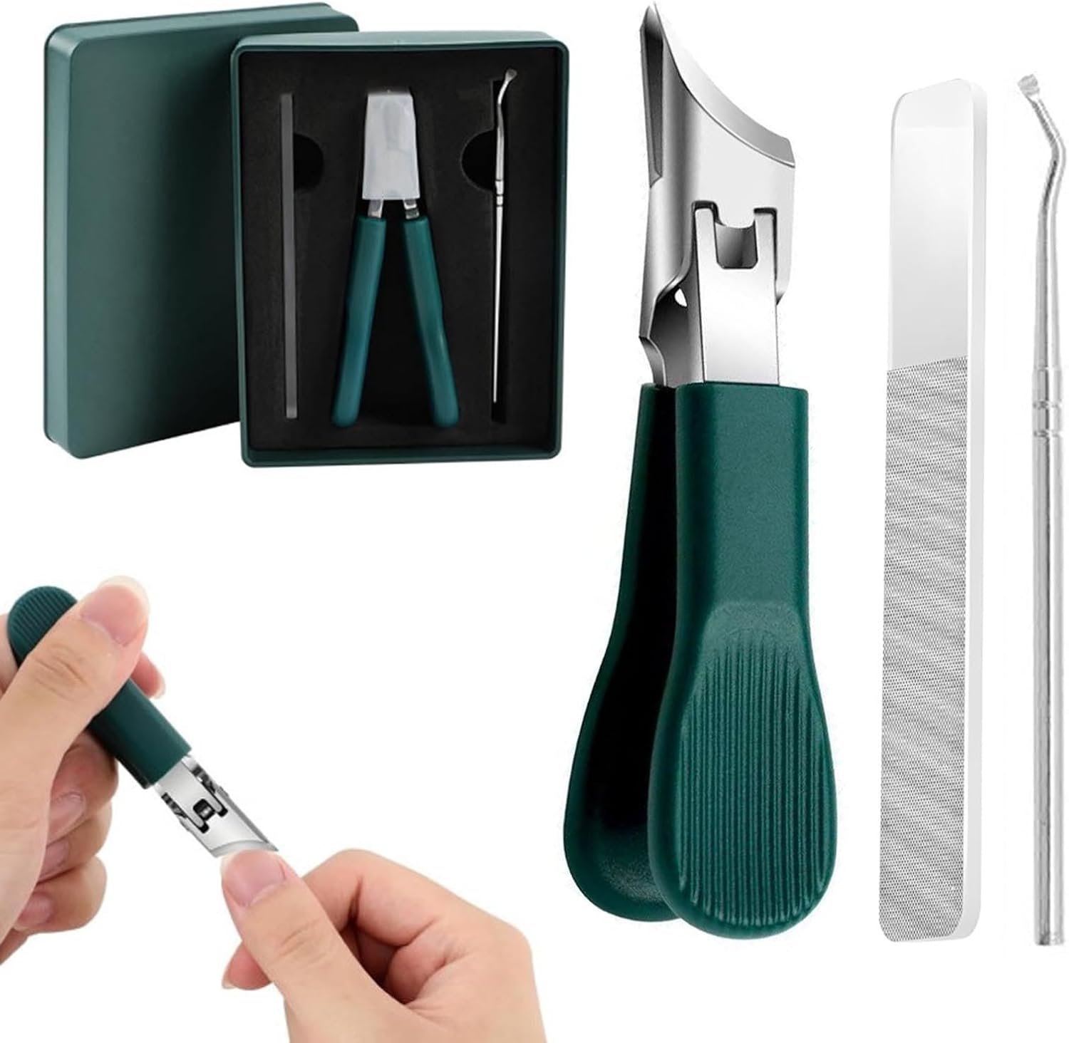 Experience effortless, precise, and clean nail trimming with our Eagle Beak Beveled Nail Clipper Set — a professional 3-piece manicure and pedicure kit designed for both men and women. Whether you’re dealing with thick toenails, ingrown nails, or simply want a salon-quality trim at home, this upgraded stainless steel tool set ensures comfort, control, and durability. The wide jaw opening makes it easy to clip thick or hard toenails, while the anti-splash storage design keeps nail clippings neatly contained, maintaining a clean and hygienic grooming space. Its eagle-beak angled head provides a precise cutting angle that fits the natural curve of your nails, reducing the risk of splitting or tearing.