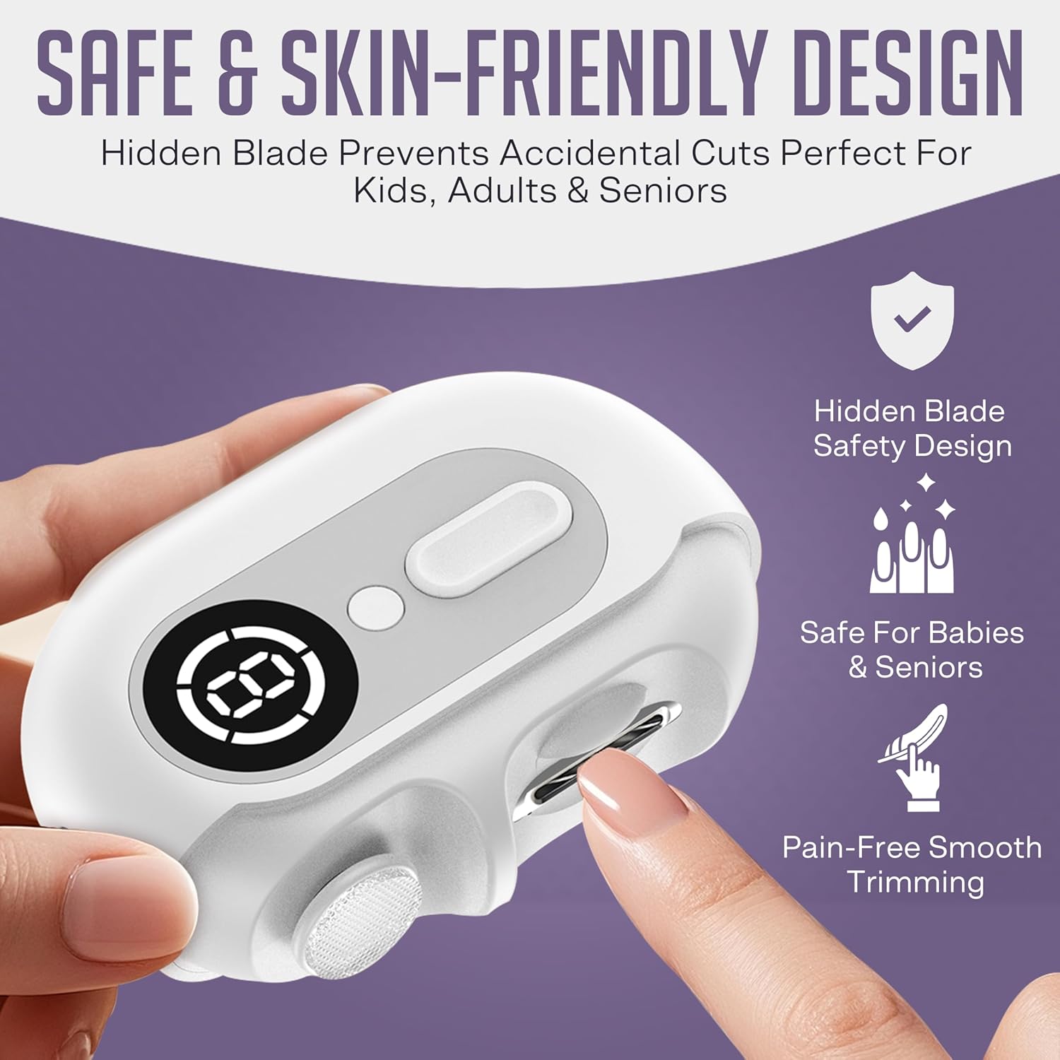 Easy Clip Nail Clippers, 4-in-1 Electric Nail Clipper Babies, Adults, Seniors, Smart Nail Clippers with LED Light Digital Display and Multiple Speed Settings, Painless Toenail Trimmer for Thick Nails