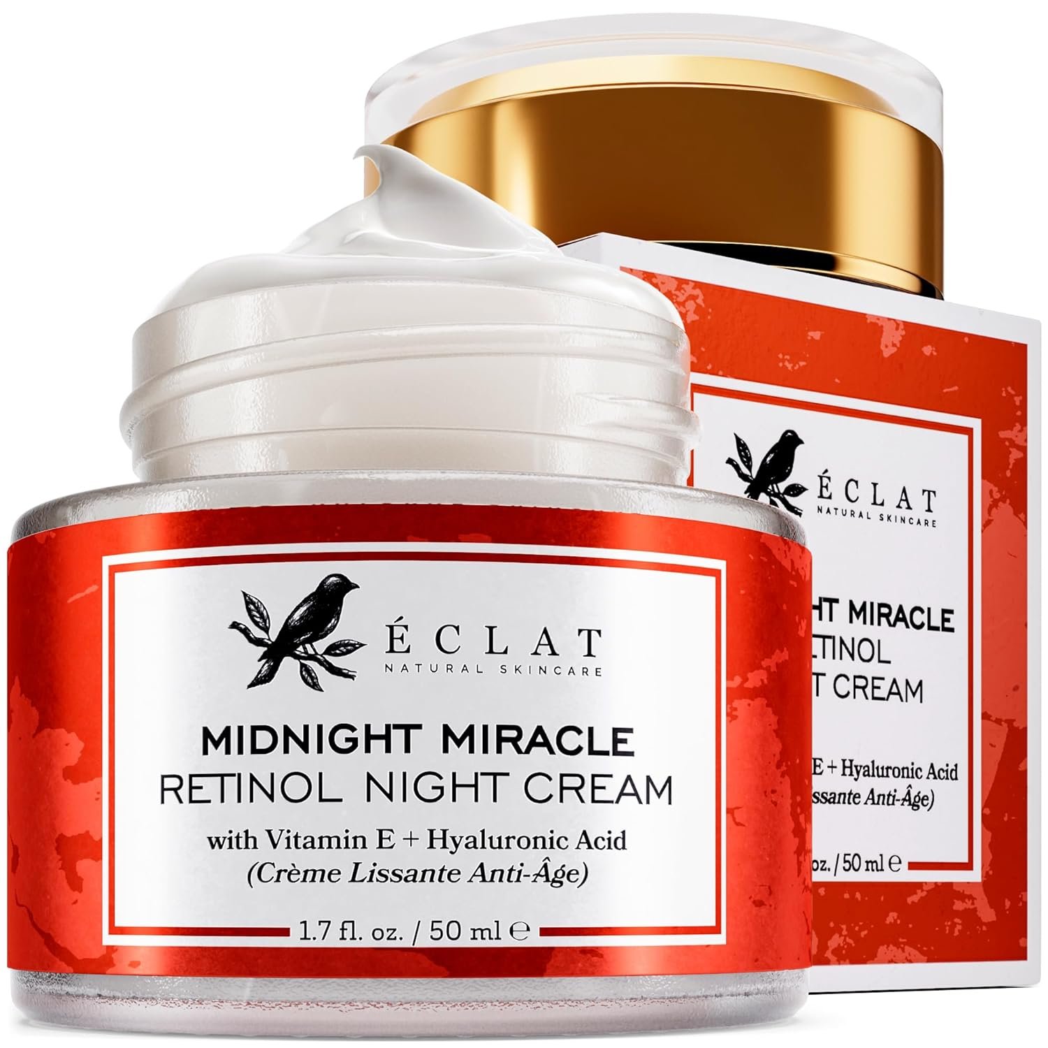 Eclat Skincare Retinol Night Cream – 2.5% Retinol & Hyaluronic Acid Face Moisturizer for Wrinkles, Fine Lines & Hydration – Firming Anti Aging Cream for Smooth, Radiant Skin 1.7 fl oz
