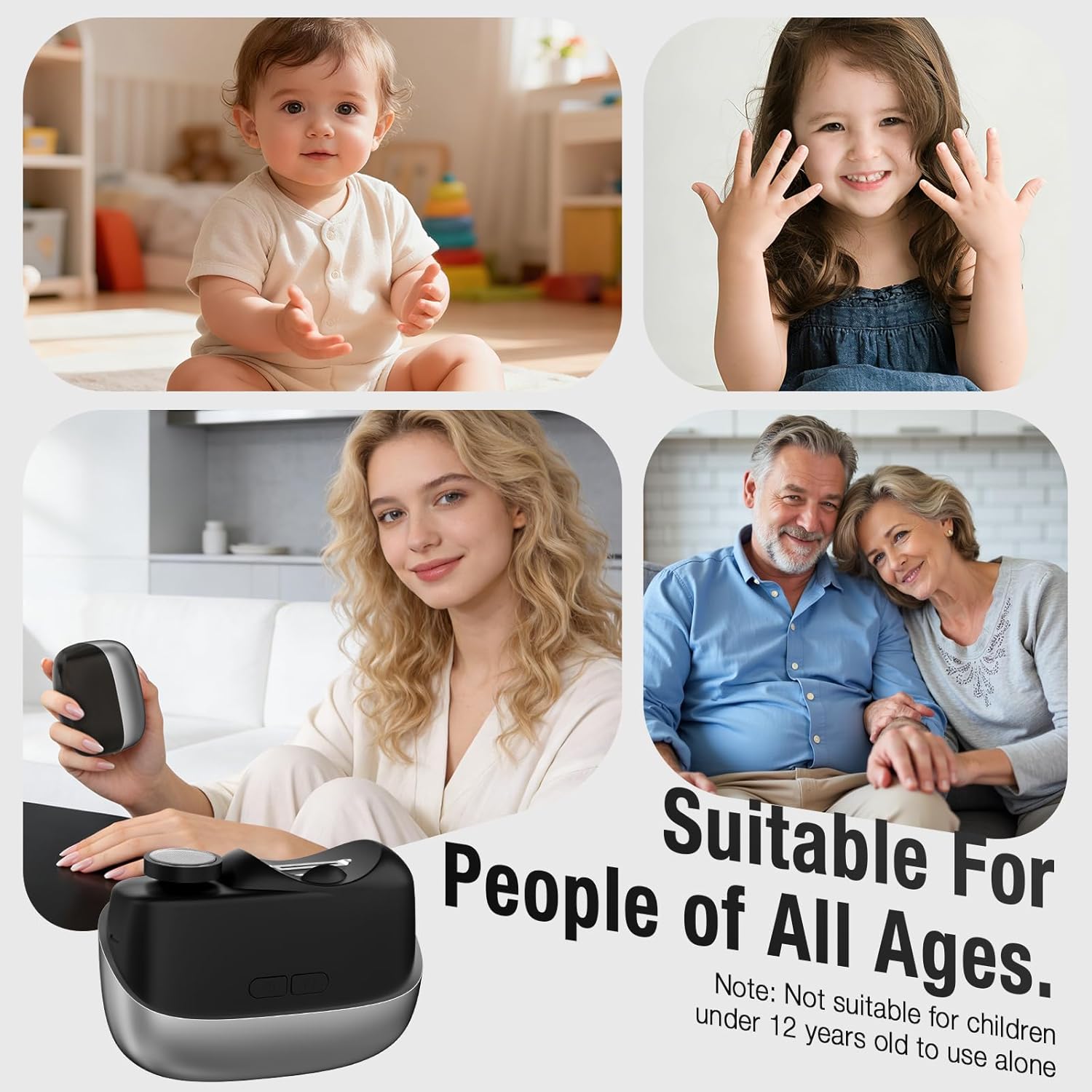 【Long Battery Life】This electric nail trimmer is equipped with a large-capacity rechargeable battery that supports fast charging, 90-day runtime per charge, no frequent recharging.