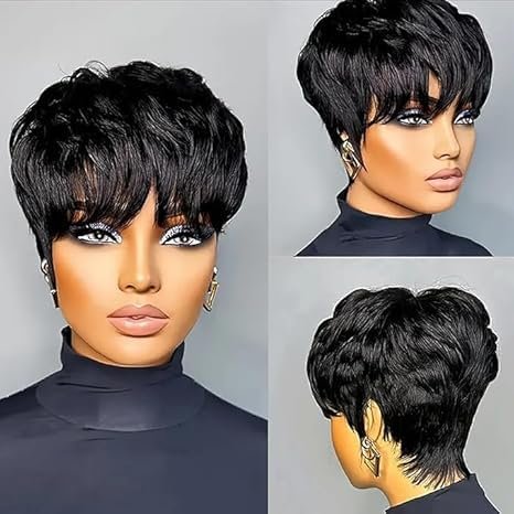 Color:Black Hair Short Pixie Cut Wigs for Black Women.