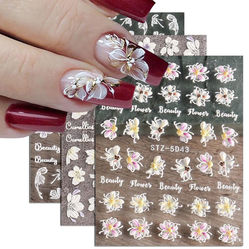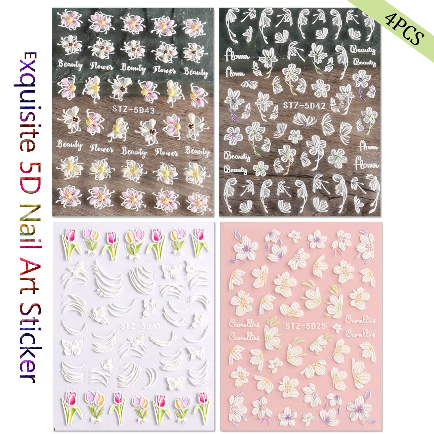 🌸[5D Embossed Nail Stickers] You will get 4 sheets spring nail stickers, unique three-dimensional effect, will not fade, more realistic than ordinary stickers, you can well create a different nail effect.
