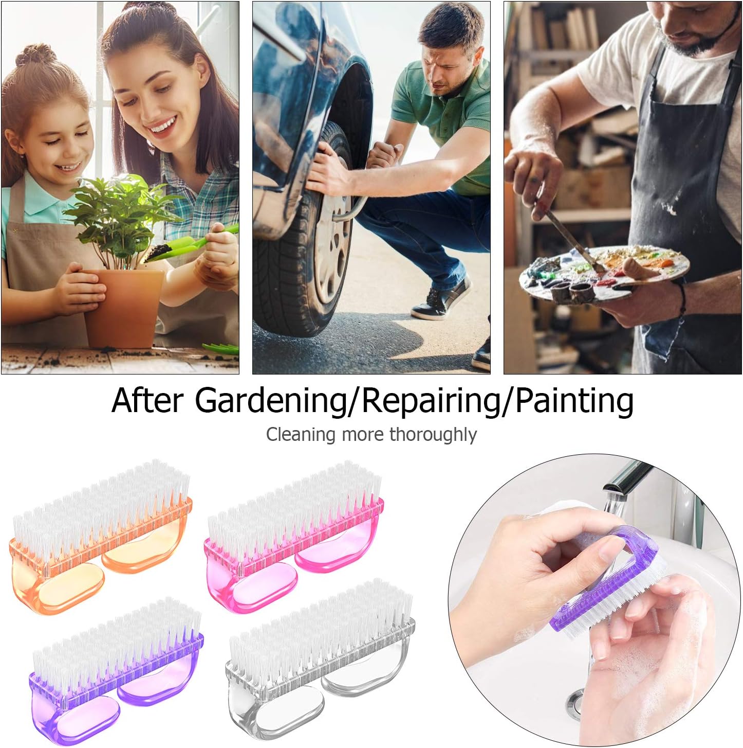 【Wide Application】: The finger nails cleaner brush is suitable for the kitchen, bathroom, garden shed sinks, which is perfect to remove dirt from hand, fingertip and foot. They are small and lightweight, will not take up much space, easy to take and store, you also can put it in your travel bag or handbag when you travel or on a business trip if you need.