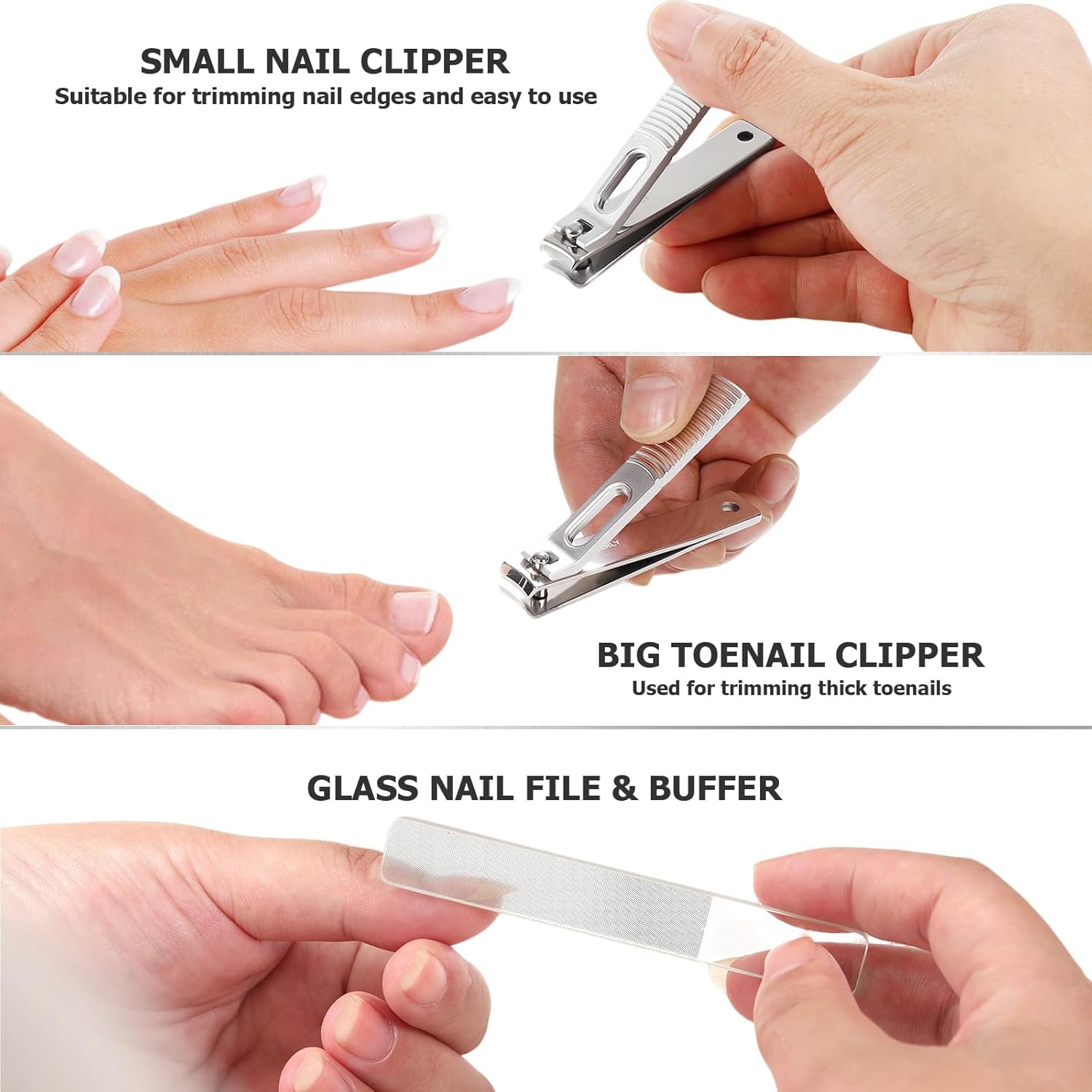 One-Stop Solution for Nail Care: no matter for daily nail grooming use, or for cuticle removing, our all-in-one nail kit can perfectly solve all of your fingernail and toenail problems