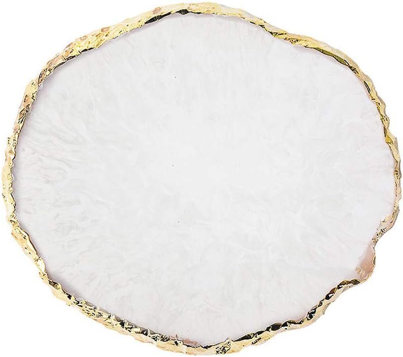 JASSINS Resin Nail Art Palette,Nail Art Painting Mixed Color Palette Gold Edge Nail Gel Color Makeup Display Board (White)