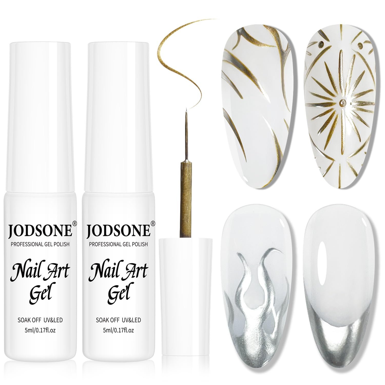 You‘ll Get:2pcs Nail Art Gel Liner Paint Set ,including Mirror Gold and Silver.With the built-in thin brush, you don’t have to get out your set of brushes for adding details and lines. of nail manicure decoration, especially for nail art manicures. It not only creates a gorgeous momentum for your nails.