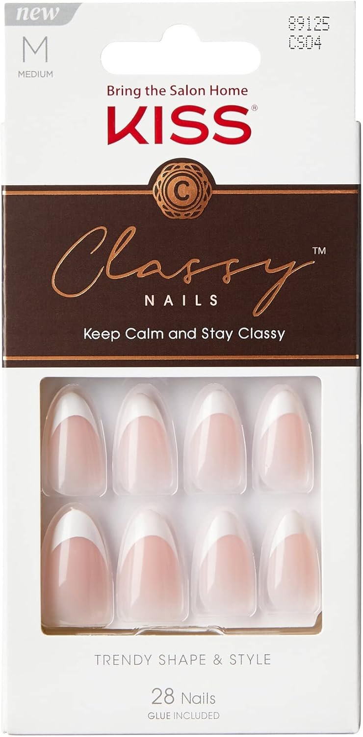 Ready to Wear in Minutes: Easy to apply and hassle free removal, the KISS Classy Nails – Dashing are coffin shaped, medium length, and a fresh and trendy take on the classic French manicure with no hassle or dry time